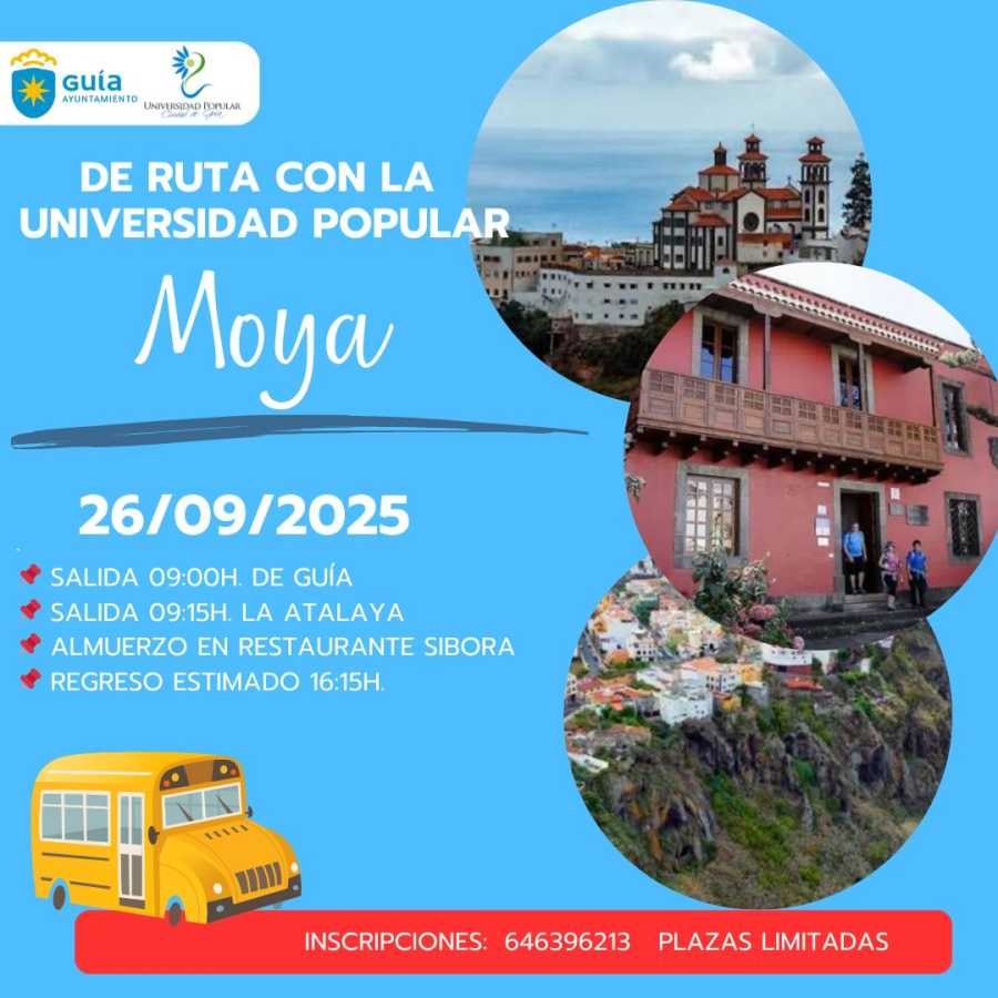 Para inaugurar estas salidas, el destino elegido es el municipio de Moya, municipio limítrofe con Guía, y que cuenta con una población de casi 8000 habitantes.