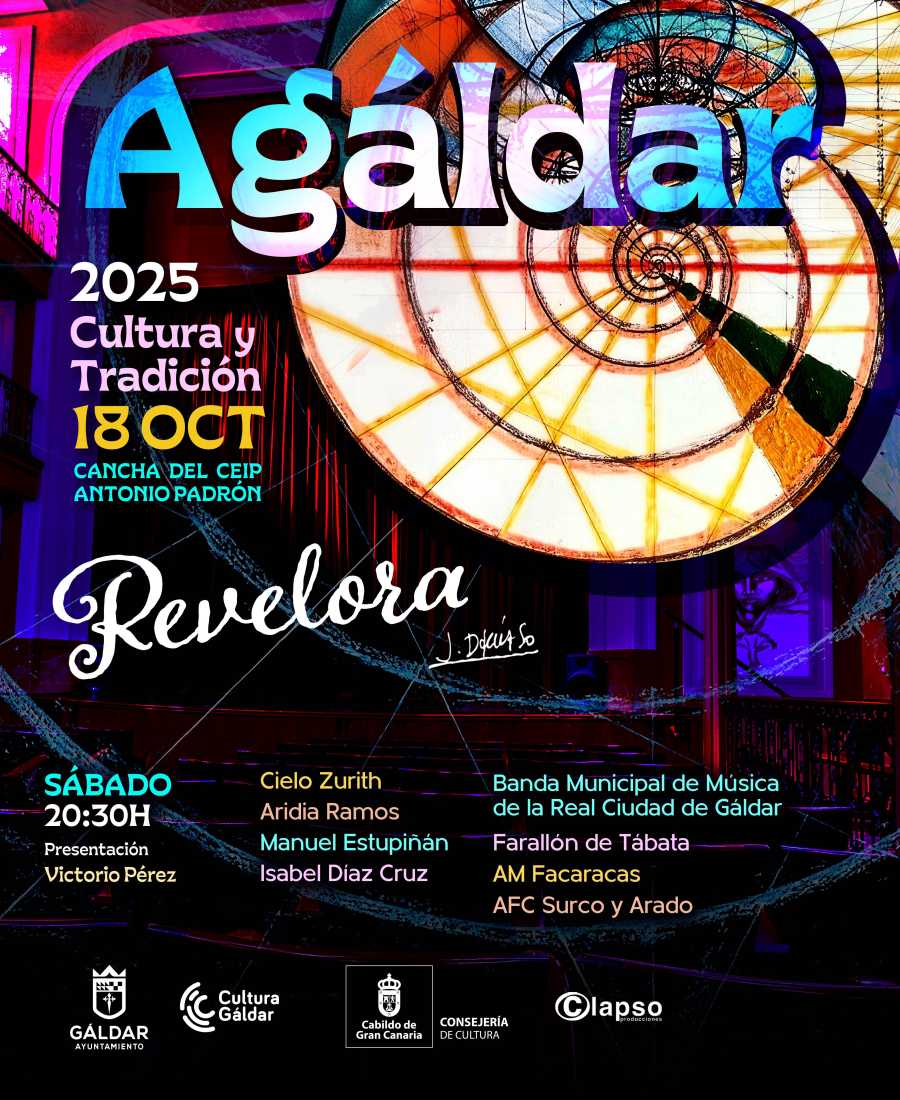 Gáldar volverá a ser el epicentro de la música popular canaria con la celebración de una nueva edición del Festival Agáldar Cultura y Tradición, que tendrá lugar el próximo sábado 18 de octubre de 2025, a partir de las 20:30 horas, en la Cancha del CEIP Antonio Padrón. El evento está organizado por la Concejalía de Cultura del Ayuntamiento de Gáldar, que dirige Julio Mateo Castillo.