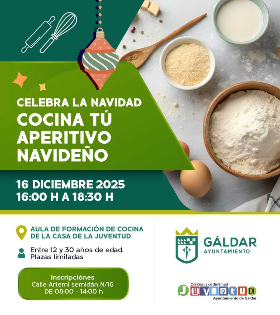 La Concejalía de Juventud del Ayuntamiento de Gáldar, que dirige Antonio María Benítez Melián, organiza un taller con motivo de las fiestas navideñas, denominado ‘Cocina tu aperitivo navideño’, una propuesta que une tradición, creatividad y sabor, dirigida a jóvenes entre 12 y 30 años de edad.