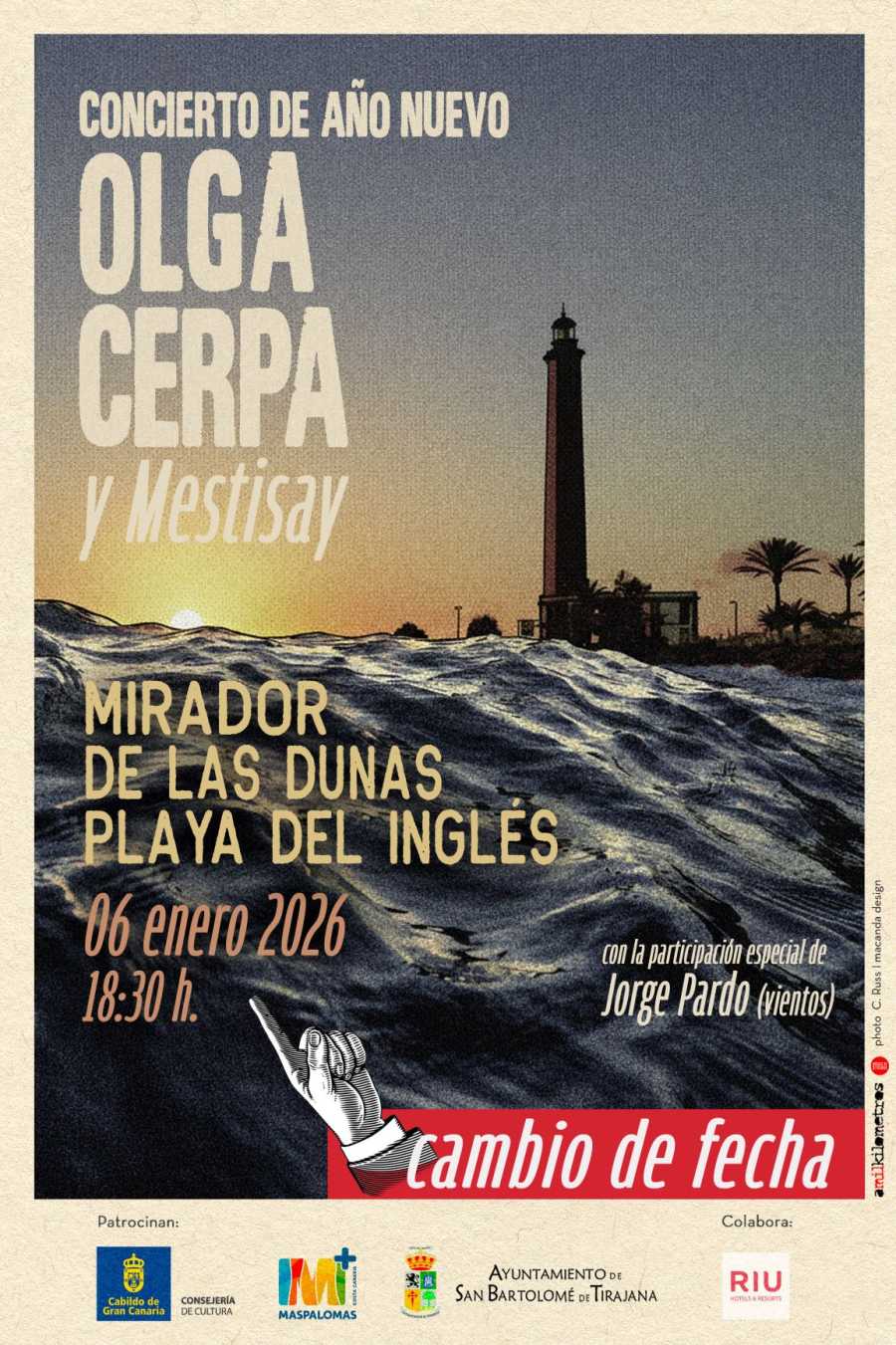 Se aplaza al día 6 de enero el concierto de Olga Cerpa y Mestisay en el Mirador de las Dunas
