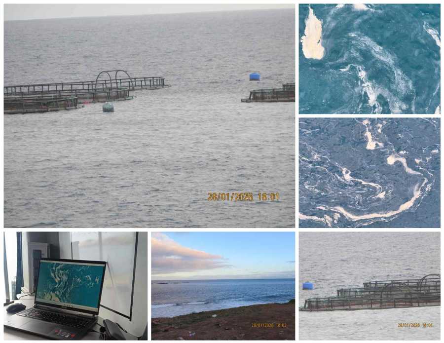 Según recogen literalmente las actas, durante la mañana se detectaron manchas de materia grasa en la superficie del mar, de consistencia grasa y con olor a pescado, en forma de espuma y aceite flotante, localizadas entre las jaulas de cría de lubina situadas frente a la costa de Telde, las zonas de baño de Salinetas y Melenara y el muelle de Taliarte, favorecidas por las condiciones de viento de sur a norte.
