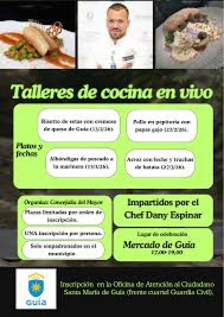 La Concejalía del Mayor, que dirige Alejandro Rivero, pone en marcha una programación de talleres de cocina en vivo  que se desarrollarán durante los meses de febrero y marzo en el Mercado de Guía dirigidos a personas mayores empadronadas en el municipio.