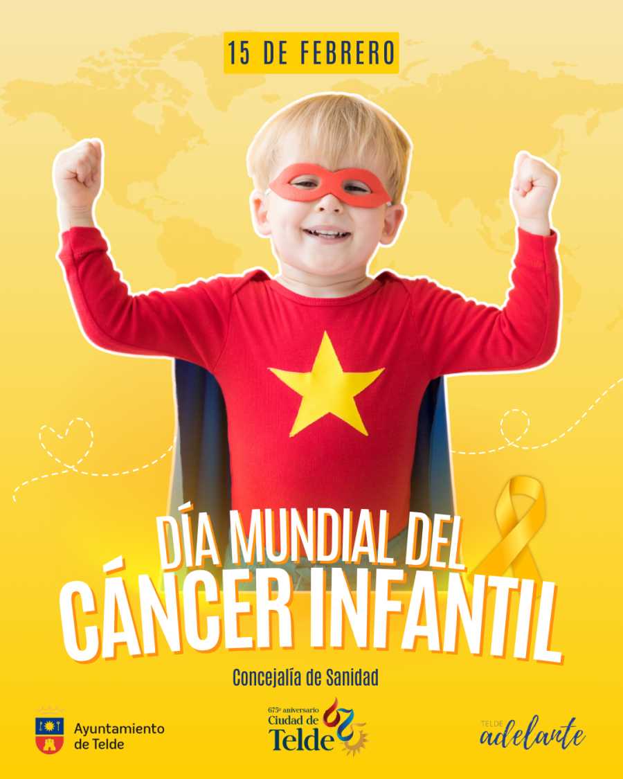 Telde, a 15 de febrero de 2026. El Ayuntamiento de Telde eliminará de dorado y naranja en la noche de este domingo 15 de febrero con motivo del Día Mundial contra el Cáncer Infantil, sumándose así a la iniciativa internacional de sensibilización y apoyo a los menores afectados por esta enfermedad y a sus familias.