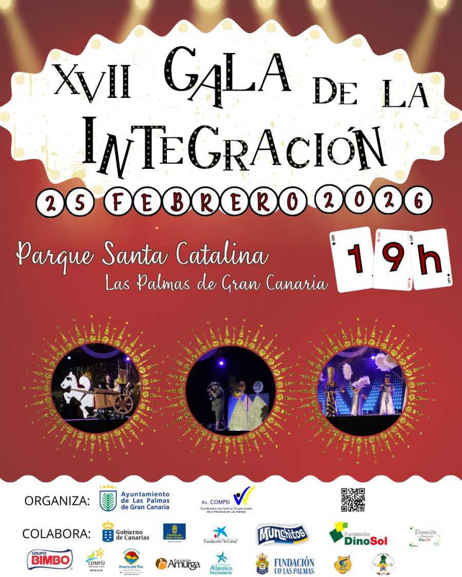 La Asociación COMPSI y la Sociedad de Promoción del Carnaval de Las Palmas de Gran Canaria, organizan la XVII GALA DE LA INTEGRACIÓN - 2026, en el Parque de Santa Catalina, el miércoles día 25 de febrero a las 19 horas. En esta Gala participarán más de medio millar de personas usuarias de Centros de Atención a personas con Discapacidad de Gran Canaria.