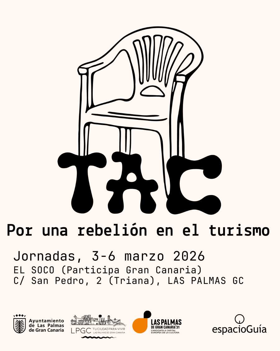 Las Palmas de Gran Canaria, 26 de febrero de 2026.- El colectivo de creación cultural espacioGuía presenta las primeras jornadas dedicadas al concepto de Turismo Activo-Cultural (TAC) bajo el título 'Por una rebelión en el turismo', una iniciativa que busca replantear los modelos de gestión turística desde una perspectiva crítica, participativa y arraigada en el territorio. El proyecto, impulsado por la plataforma grancanaria que lideran los creadores Fernando Maseda y Manena Juan, cuenta con el respaldo del Ayuntamiento de Las Palmas de Gran Canaria a través de su Candidatura a Capital Europea de la Cultura 2031.
