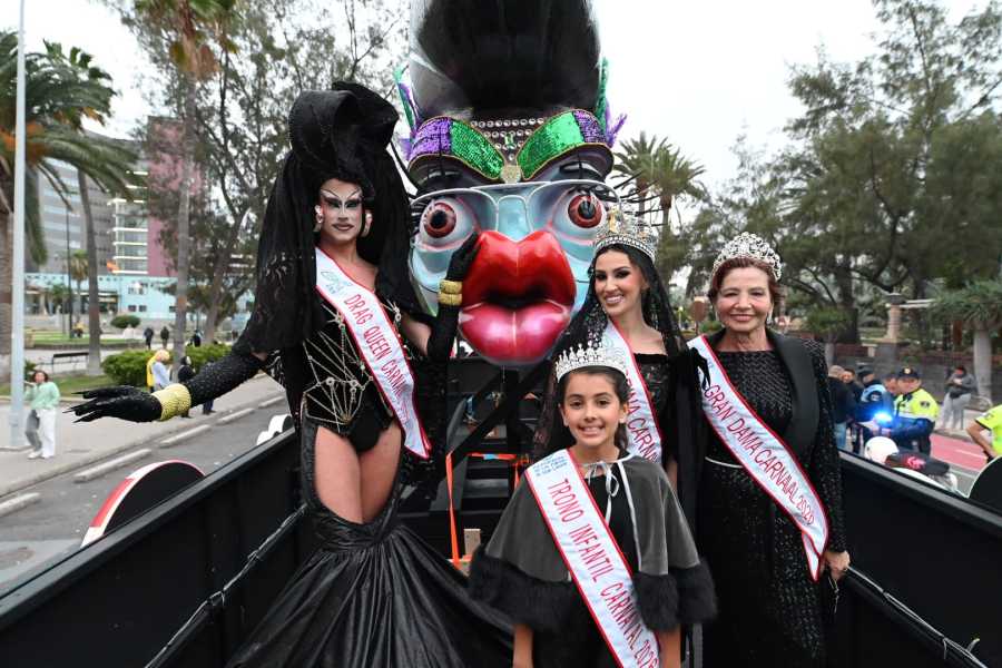 Un desfile que congregó a la familia del Carnaval; Los personajes de la fiesta, las charangas Banda Isleña y Guiniguada, las batucadas Samba Isleña, Caribe creando escuela y Paixao, la afilarmónica los Nietos de Kika, las murgas Los Star, Los Legañosos, Los Nietos de Sarymanchez, Los Chacho Tú, Los Serenquenquenes, Las Lady´s Chancletas, Las Traviesas, Las Despistadas, Los Trapasones, Majaderos, Las Crazy Trotas, Los Chancletas, Los Twitty’s y Trabalonas, las comparsas Baracoa, Kisamba, Yoruba, Chiramay, Nasáu y Cayo Mambí y la carroza anunciadora.