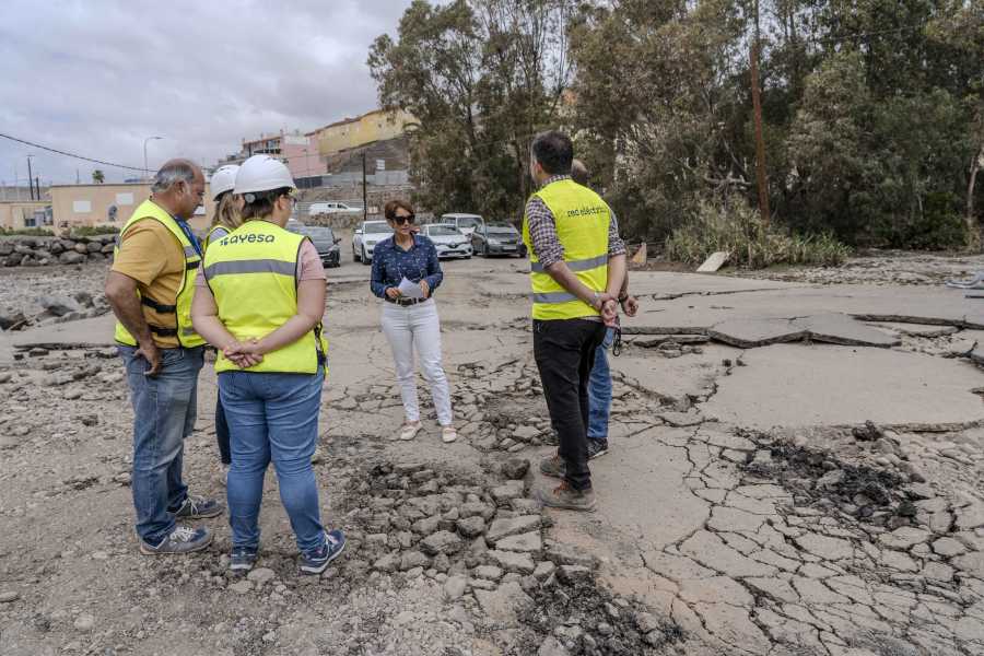 “El asfaltado ha quedado seriamente dañado por el caudal del barranco” ha señalado la alcaldesa, señalando que se trata de un ámbito cuya competencia corresponde al Consejo Insular de Aguas. “Vamos a aprovechar la maquinaria de Red Eléctrica que ya están por la zona para retirar el asfalto que no se encuentra en buen estado y habilitar un camino provisional”, ha explicado.