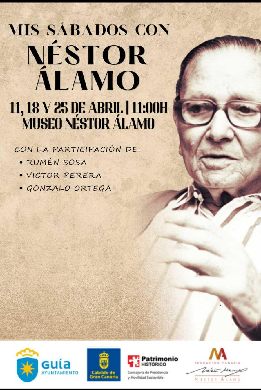 Guía, 7 de abril de 2026.- La Concejalía de Cultura del Ayuntamiento de Guía de Gran Canaria, que dirige Julián Melián, organiza el ciclo “Mis sábados con Néstor Álamo”, una propuesta cultural que se desarrollará los días 11, 18 y 25 de abril en el Museo Néstor Álamo, a partir de las 11:00 horas, con el objetivo de acercar al público la figura y el legado de uno de los grandes referentes de la cultura canaria.